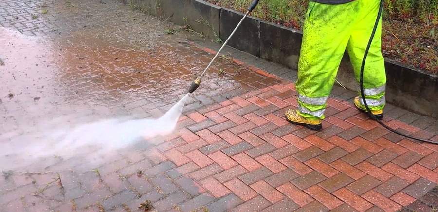 Be careful with concrete paving, as excess or overly strong jet washing can damage the paving slabs. In extreme cases, the aggregate will be exposed.